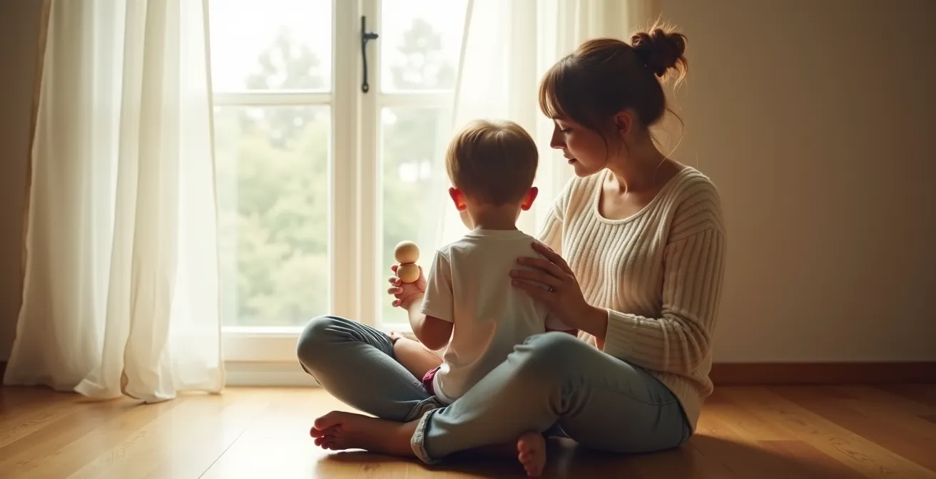 The “Get Low, Get Quiet, Get Close” protocol is a powerful, three-part physical strategy that puts active listening into practice. It’s a non-verbal message that says, “I am not a threat. I am here to help.” Neuroscience research confirms that this approach signals safety to the primitive brain, allowing the rational brain to come back online within two minutes in the majority of tantrums. Your presence becomes the anchor in their emotional storm.